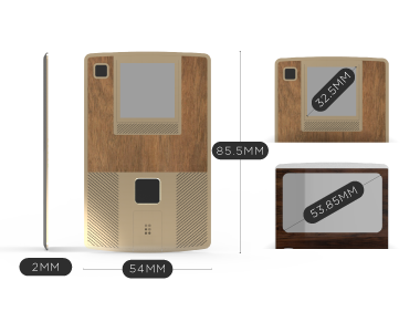 BLE • WIFI • E-PAPER DISPLAY BIOMETRIC SENSOR • USB • RECHARGABLE BATTERY NFC ENABLED • PAYMENTS ENABLED CAPACITIVE TOUCH SENSOR • 6-AXIS MOTION SENSOR
